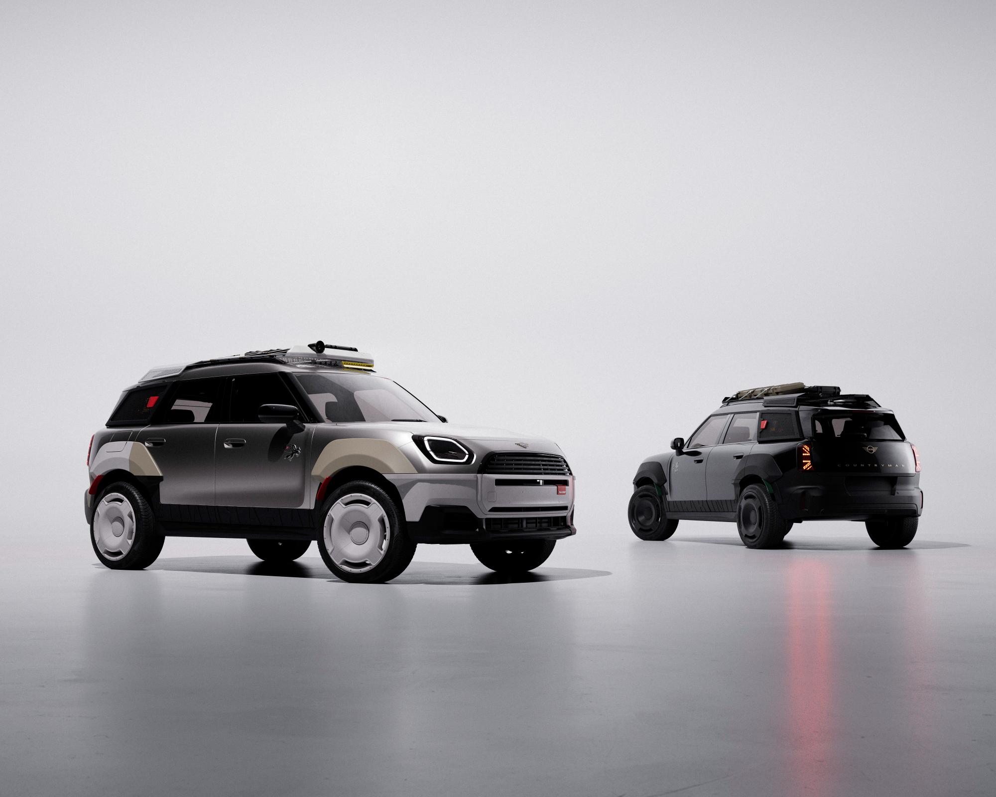 Cele două Mini Countryman unicat se deosebesc vizual prin schemele cromatice folosite, care subliniază caracterul lor special și funcționalitatea orientată spre outdoor.