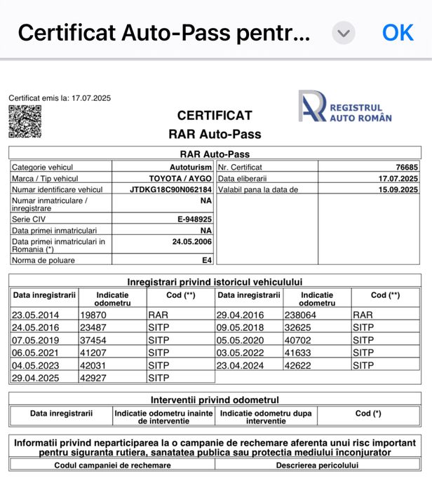 Verifică rulajul și istoricul